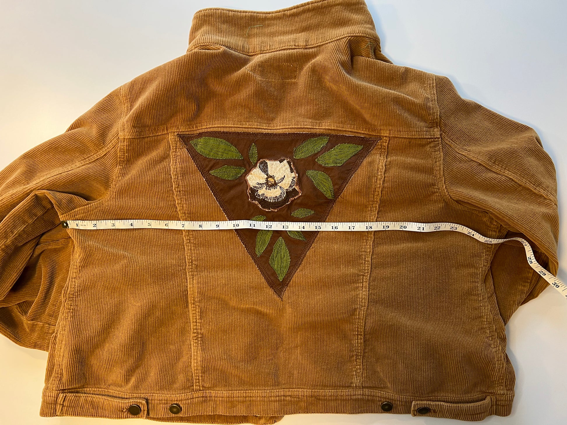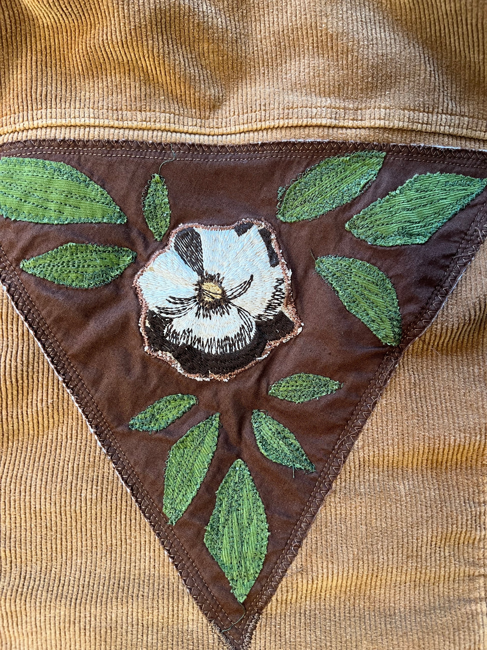 Brown Corduroy jacket with floral embroidered patch